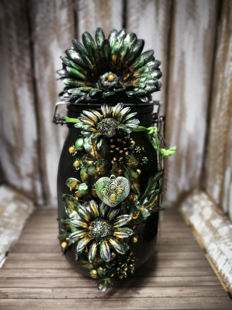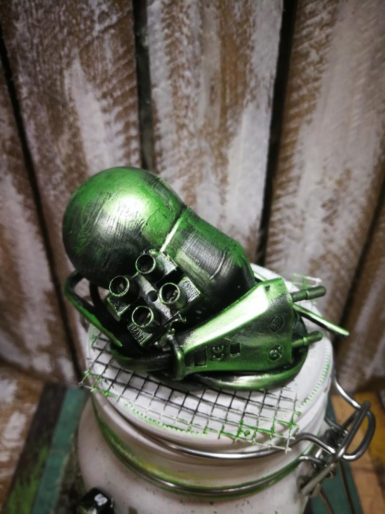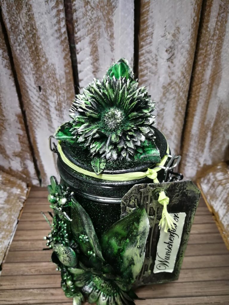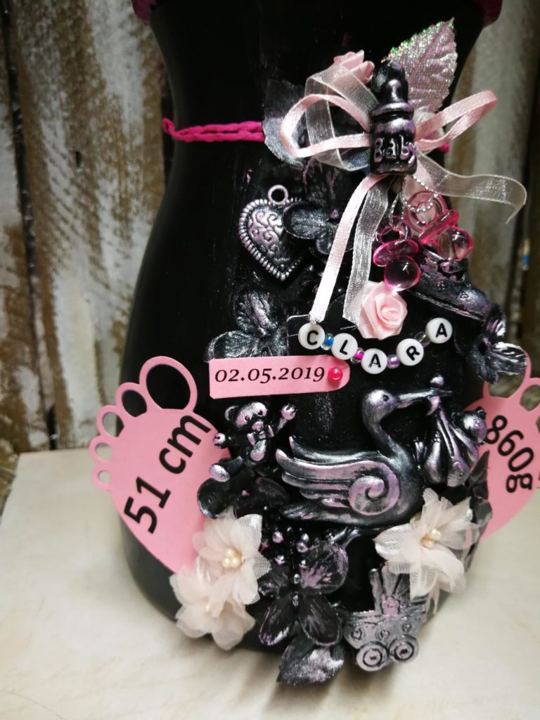 Die Idee hatte ich schon nach der 1.Flasche. Die Gelegenheit kam und es wurde ein Gefäß gesucht, wo man Geld reinlegen konnte. So erwachte mein Wunscherfüller Gläschen. Auch hier kann man mit vielen Farben und Formen spielen.